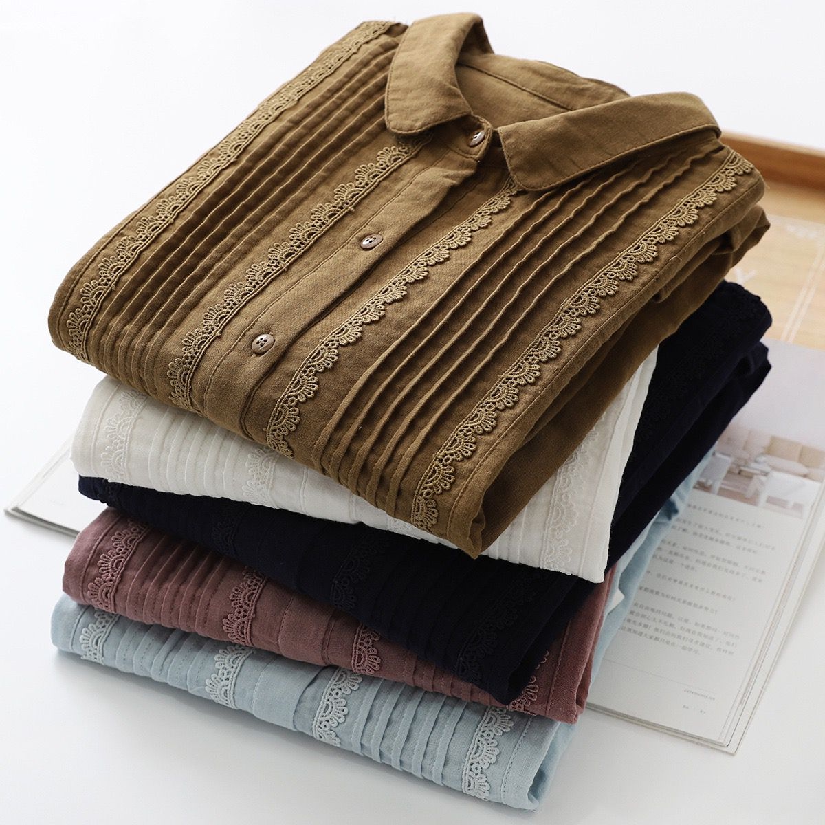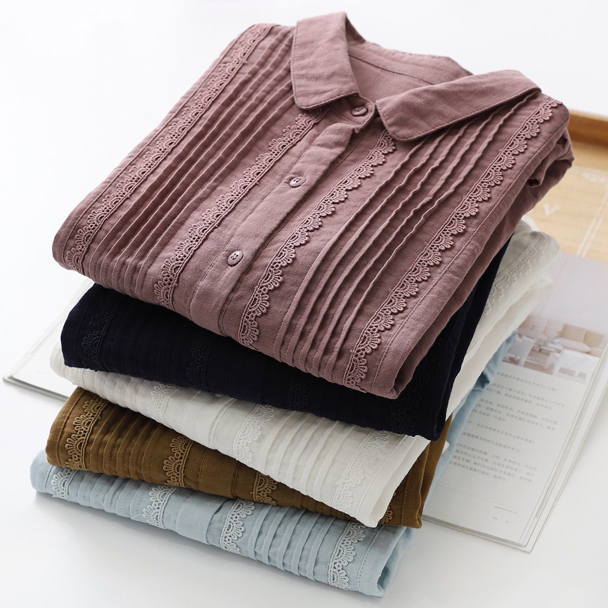 Pure Cotton Shirt With Beautiful Pleats design and Lace Work